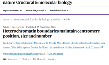 Ben L Carty 1, Danilo Dubocanin 2, Marina Murillo-Pineda 1 3, Marie Dumont 4, Emilia Volpe 5, Pawel Mikulski 1 6, Julia Humes 1, Oliver Whittingham 1, Daniele Fachinetti 4, Simona Giunta 5, Nicolas Altemose 2, Lars E T Jansen 7